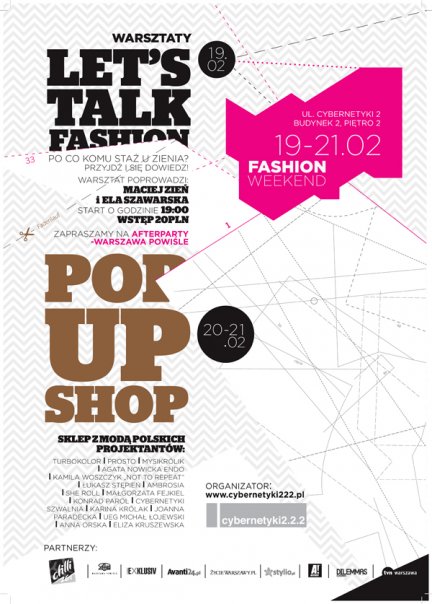Liczymy, że dobrego złe początki, bo idea comiesięcznych spotkań pod hasłem „Let’s talk Fashion” i uczynienie z Centrum Cybernetyki platformy wymiany modowej myśli brzmi bardzo interesująco. W kwietniu na warsztatach pojawią się specjaliści z agencji przewidywania i analizowania tredów WGSN ( Worth Global Style Network ) w Londynie, a w maju swój przyjazd potwierdziła już podobno współpracowniczka Stelli McCartney. My będziemy na pewno.