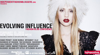 Evolving Influence. Pod takim tytułem odbędzie się konferencja o blogach poświęconych modzie. 15 lutego w godzinach od 10.00-18.00 uczestnicy będą mogli przysłuchiwać się i uczestniczyć w dyskusji na temat biznesu i etyki w blogach modowych, różnicy pomiędzy blogami profesjonalnymi a amatorskimi i o ich przyszłości. Wśród zaproszonych gości jest między innymi Diane Pernet, Tavi Gevinson czy Susie Bubble. Konferencja jest zorganizowana w ramach nowojorskiego tygodnia mody.